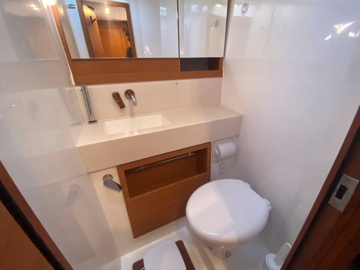 Dufour 470 „CURIE“ ponúka špeciálny komfort s nasledujúcimi vlastnosťami vybavenia: Klimatizácia, Vankúše do kokpitu, Elektrické WC.