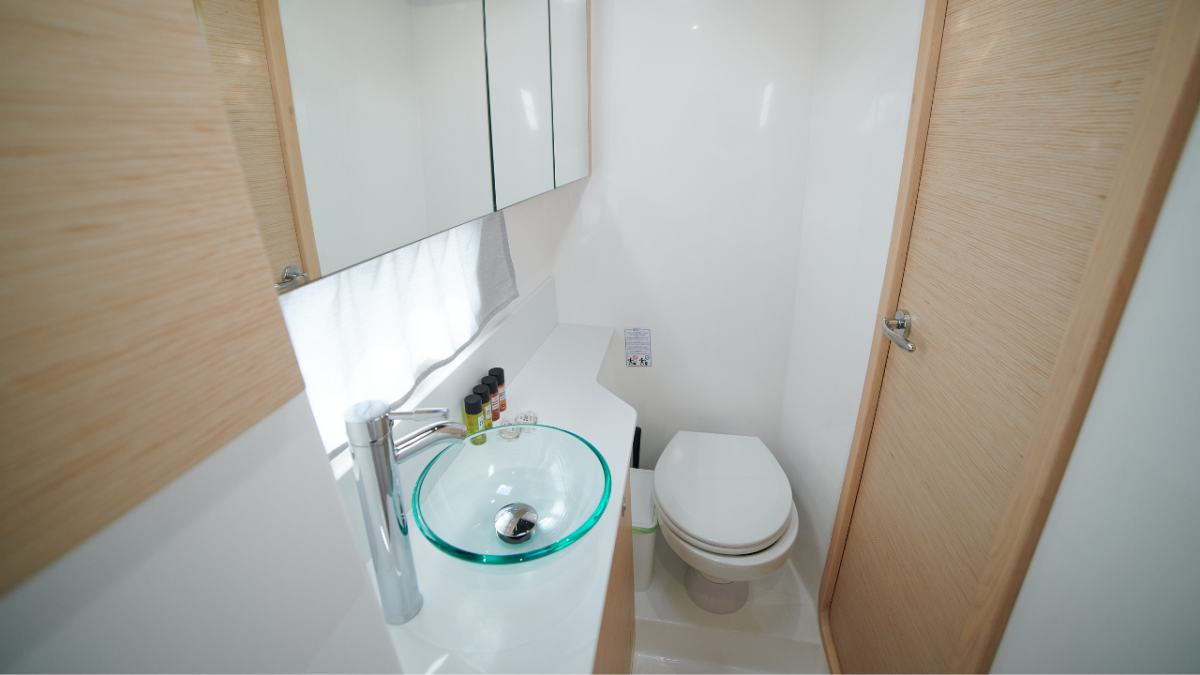 Dufour 48 Catamaran „Sonia“ ponúka špeciálny komfort s nasledujúcimi vlastnosťami vybavenia: Generátor, Klimatizácia, Mraznička, Vankúše do kokpitu, Elektrické WC, Cockpit grill.