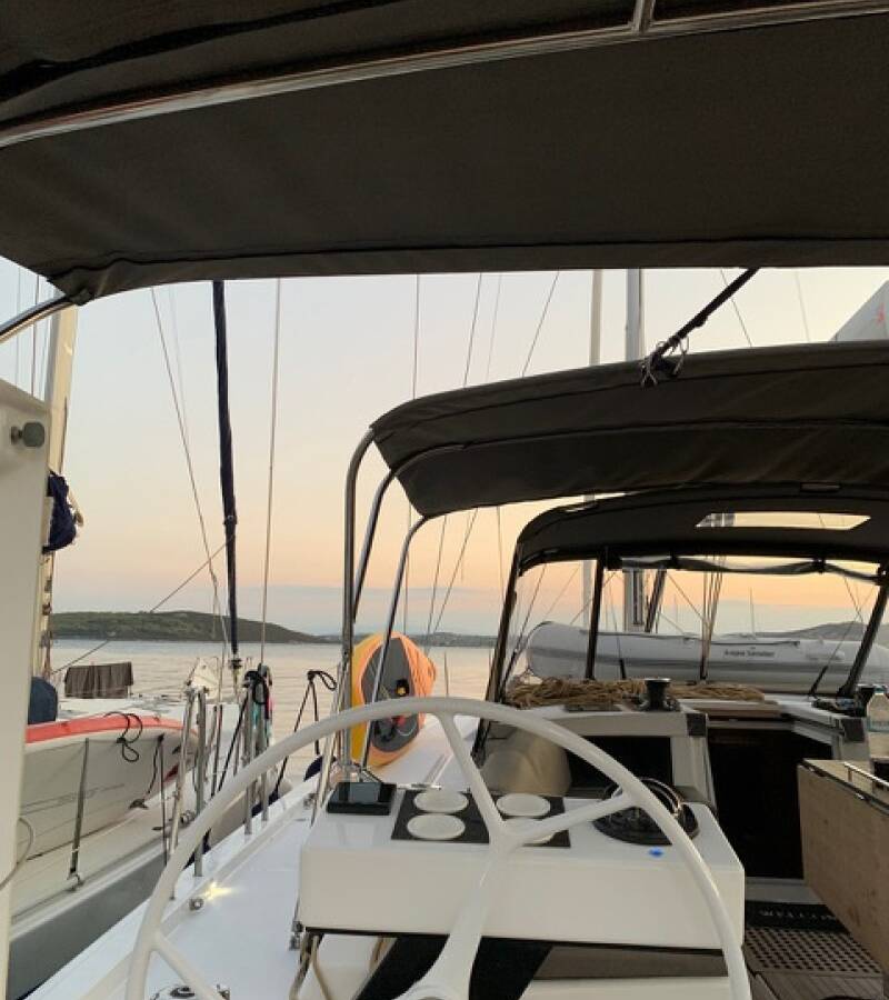 Dufour 530 „Princess Leia“ je vybavená hlavným plachtou a genovou plachtou, ako aj Bimini, Autopilot, Sprayhood.