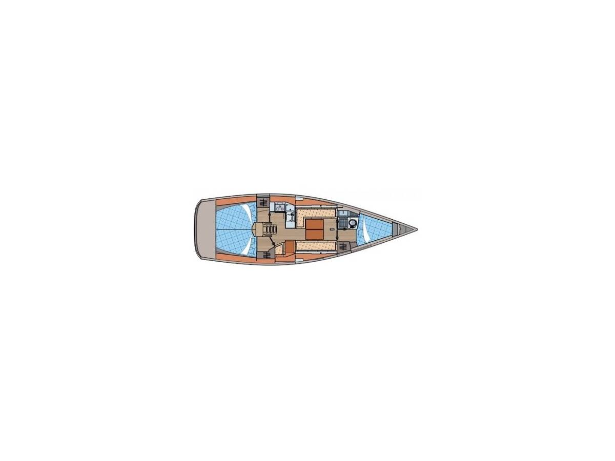 Elan 350 Performance „X-Ray“ je vybavená hlavným plachtou a genovou plachtou, ako aj Bimini, Autopilot, Kúrenie, GPS mapový plotter - kokpit.