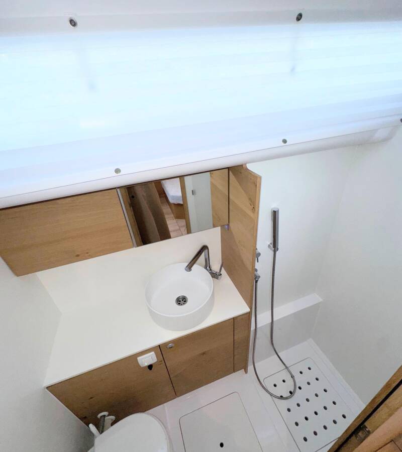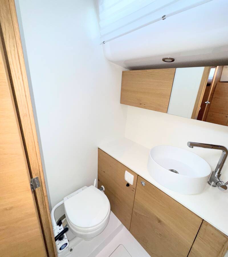 Plachetnica Elan Impression 45 „First“, postavená v roku 2024, kotví v ACI Marina Split - Chorvátsko . Jachta má 4 kajút, môže ubytovať 8 + 2 osôb a disponuje 2 toaletami/sprchami.