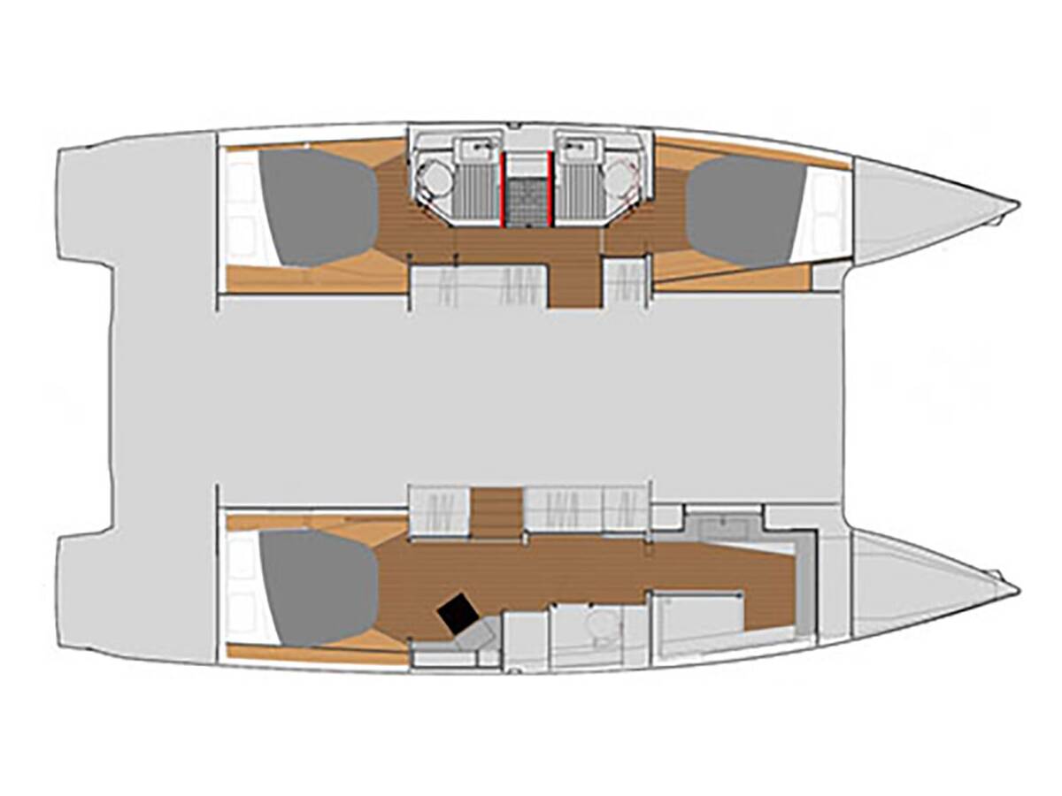 Fountaine Pajot Astrea 42 „“ ponúka špeciálny komfort s nasledujúcimi vlastnosťami vybavenia: Mraznička, Vankúše do kokpitu, Invertor, Elektrické WC, Solárne panely.
