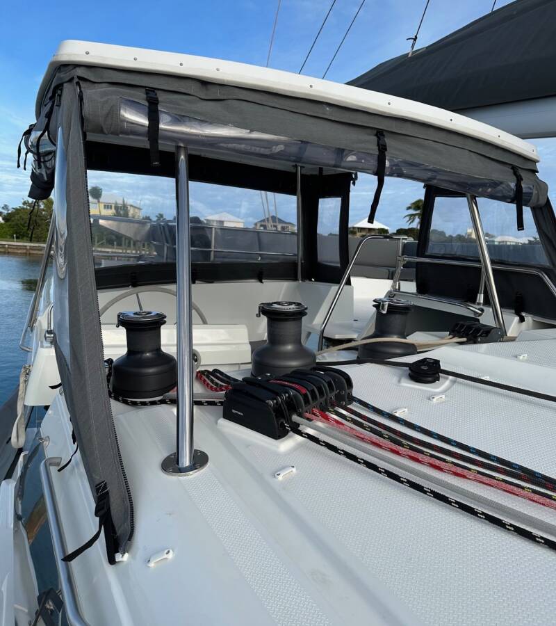 Fountaine Pajot Aura 51 „Amajen“ je vybavená hlavným plachtou a genovou plachtou, ako aj Bimini, Autopilot, GPS mapový plotter - kokpit.