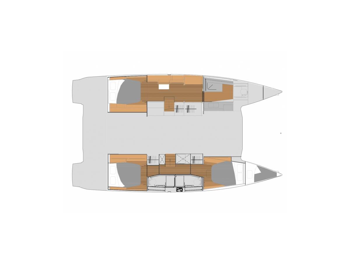 Fountaine Pajot Elba 45 „White Bird“ je vybavená hlavným plachtou a genovou plachtou, ako aj Autopilot, Sprayhood, Tíkový kokpit, GPS mapový plotter - kokpit.