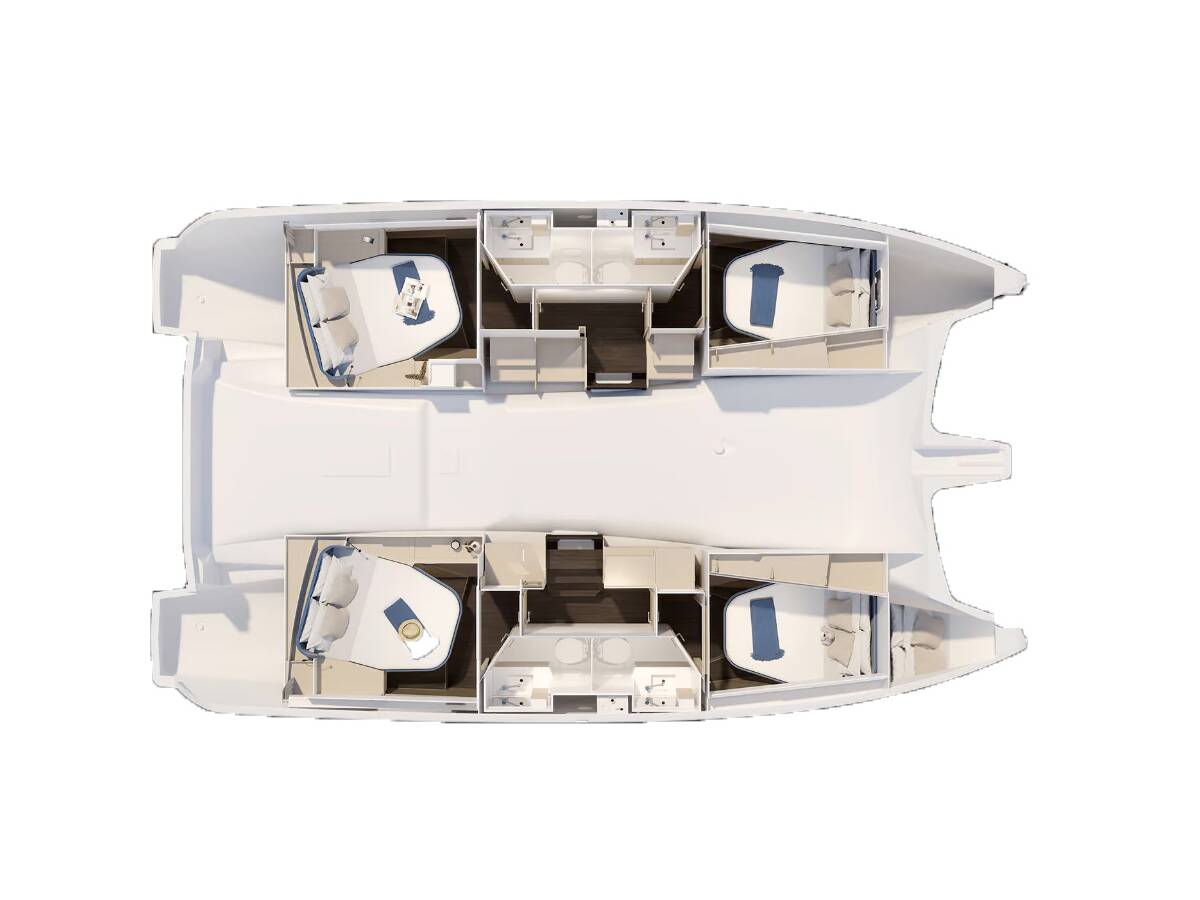 Fountaine Pajot FP 41 Quatuor 4 „Auriga“ ponúka špeciálny komfort s nasledujúcimi vlastnosťami vybavenia: Klimatizácia, Vankúše do kokpitu, Invertor, Solárne panely, Cockpit grill.
