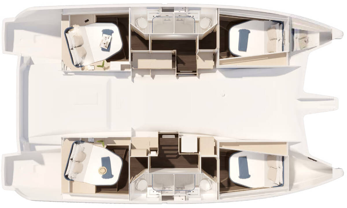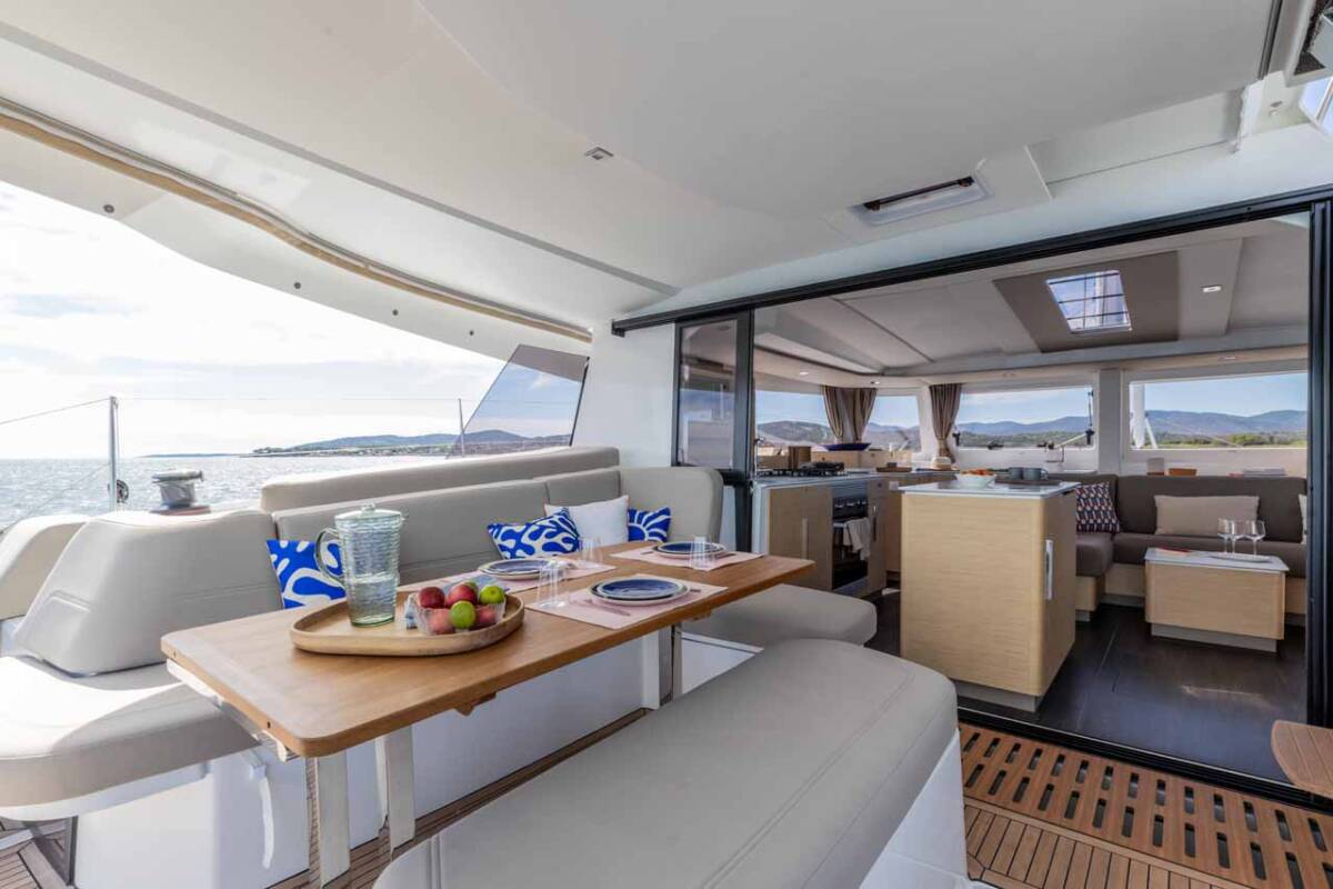Fountaine Pajot FP 44 Quatuor „Makatea“ ponúka špeciálny komfort s nasledujúcimi vlastnosťami vybavenia: Klimatizácia, Vankúše do kokpitu, Invertor, Elektrické WC, Solárne panely, Cockpit grill.