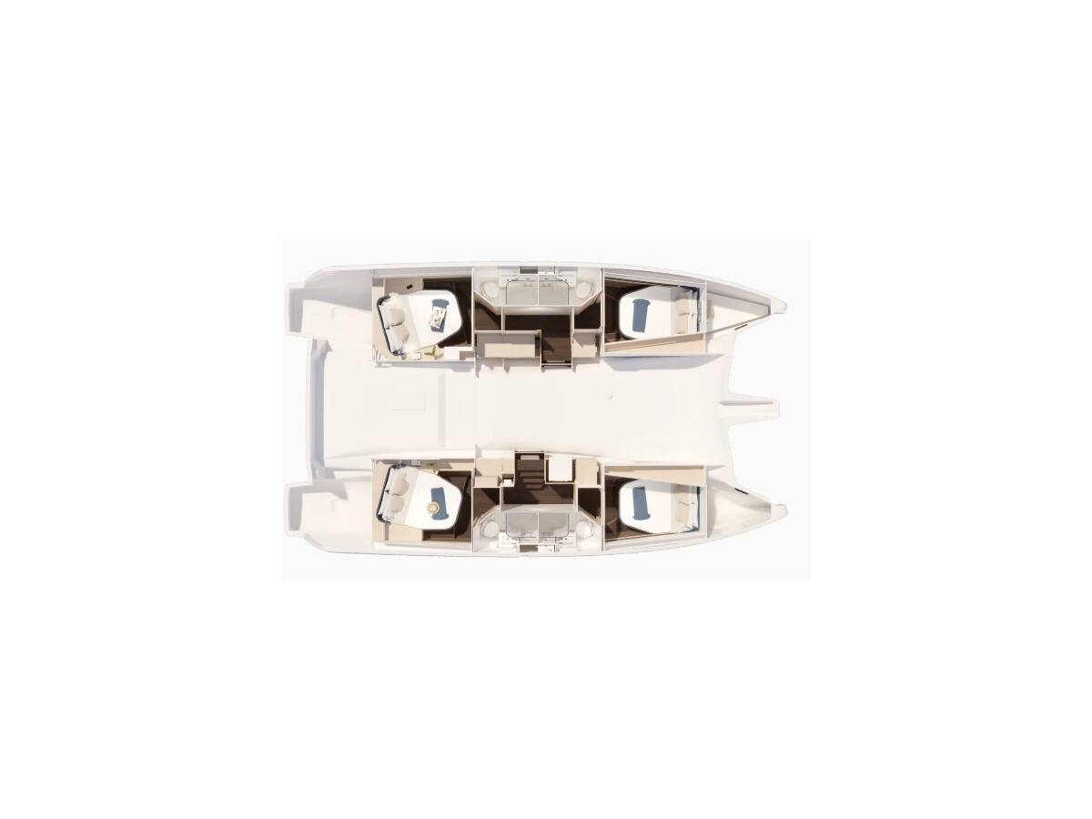 Fountaine Pajot FP 44 Quatuor „NEWTON'S CRADLE“ je vybavená hlavným plachtou a genovou plachtou, ako aj Autopilot, GPS mapový plotter - kokpit.