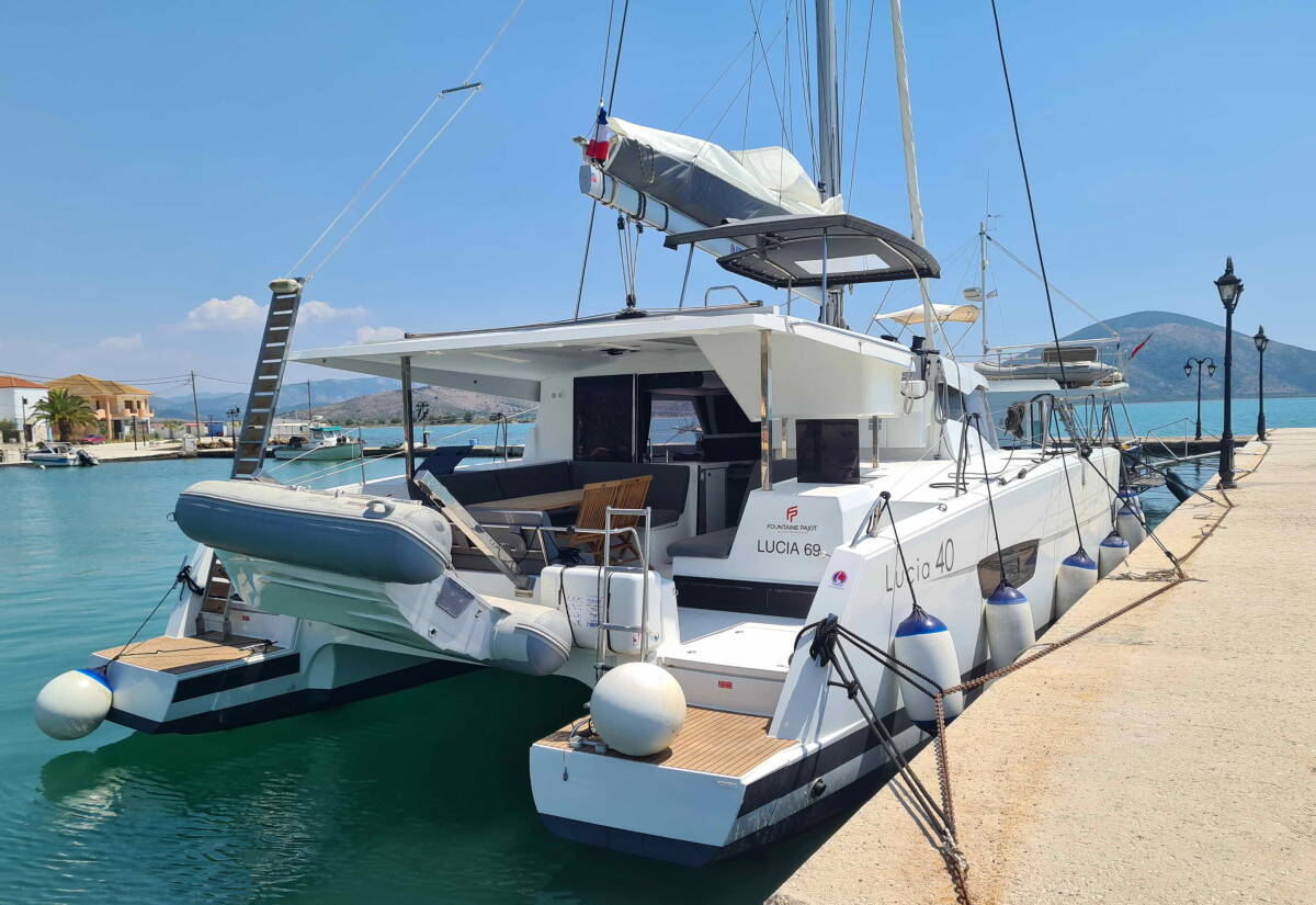 Fountaine Pajot Lucia 40 „Lucia 69“ je vybavená hlavným plachtou a genovou plachtou, ako aj Bimini, Autopilot, Sprayhood.