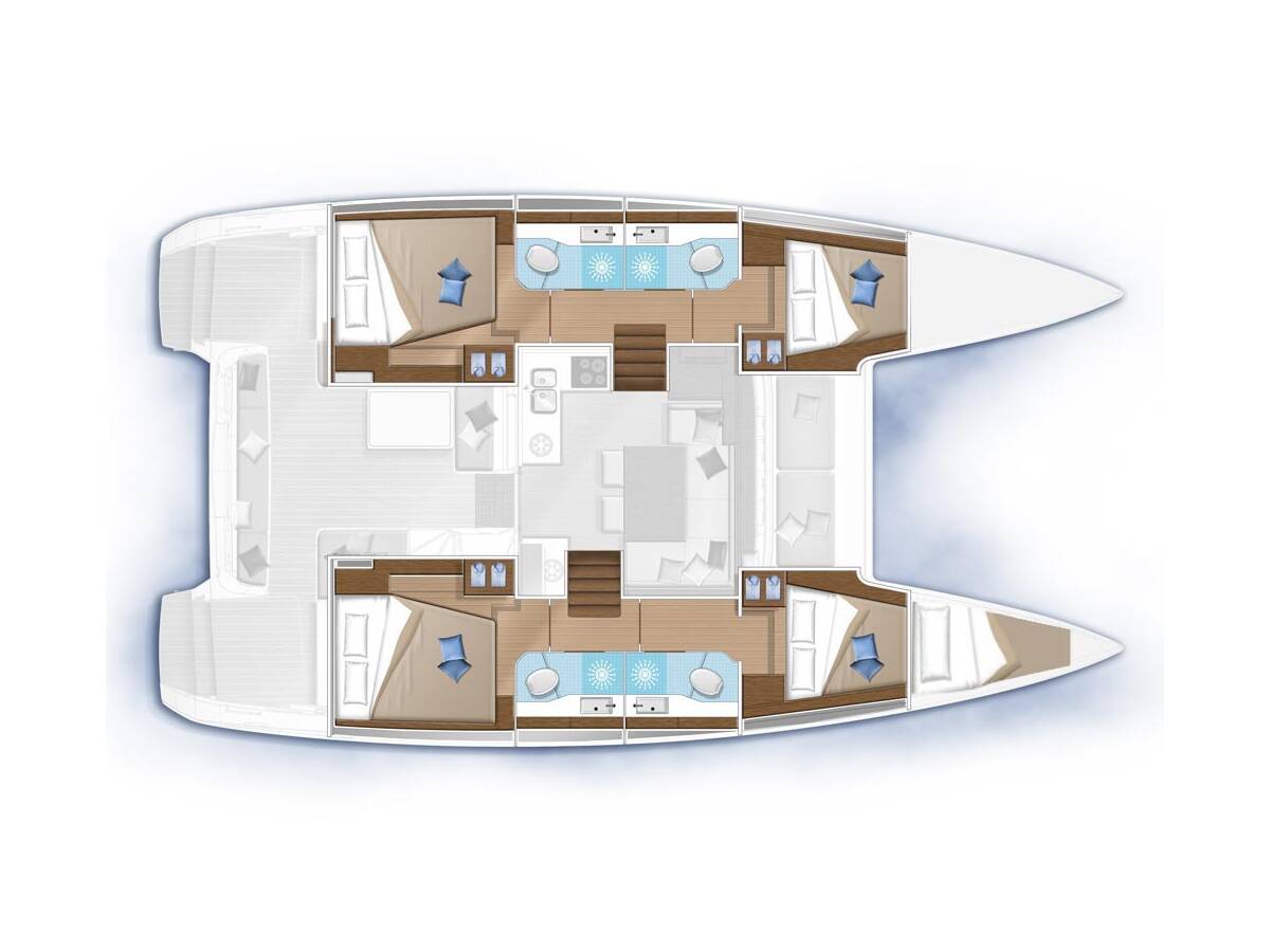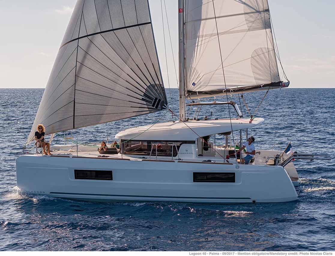 Lagoon 40 „Sunset“ ponúka špeciálny komfort s nasledujúcimi vlastnosťami vybavenia: Vankúše do kokpitu, Invertor, Elektrické WC, Solárne panely.