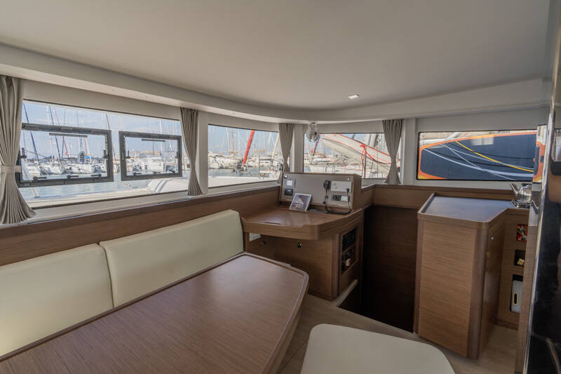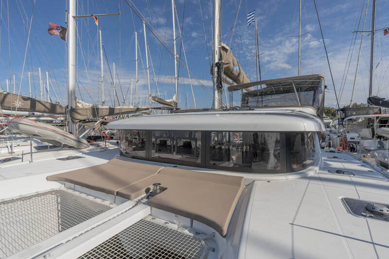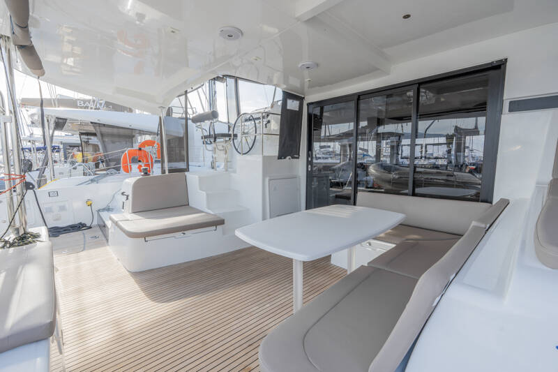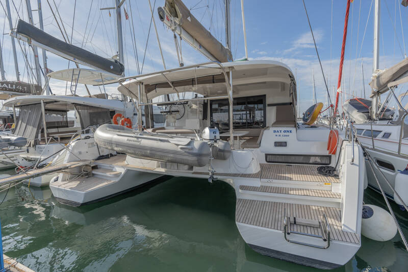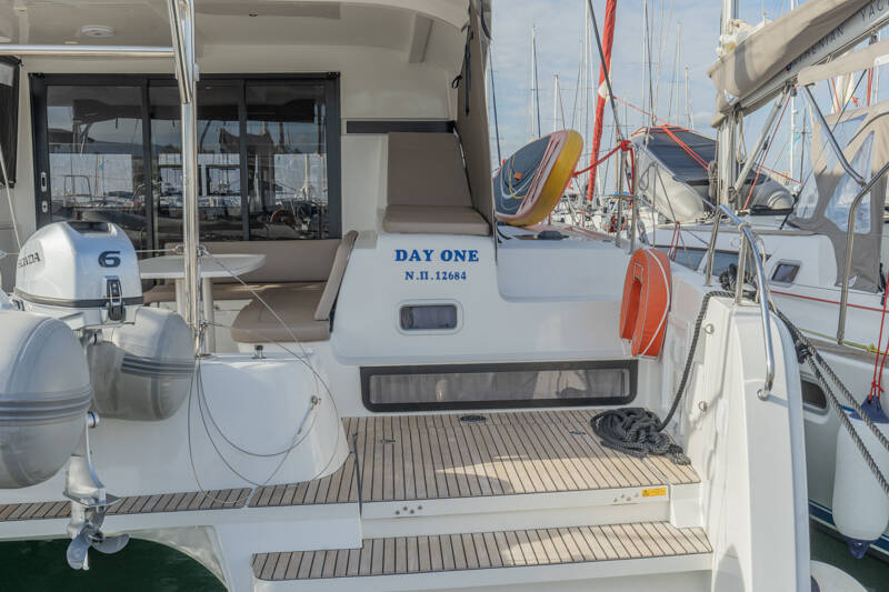 Lagoon 42 „Day One“ je vybavená hlavným plachtou a genovou plachtou, ako aj Radar, Bimini, Autopilot, Tíkový kokpit.