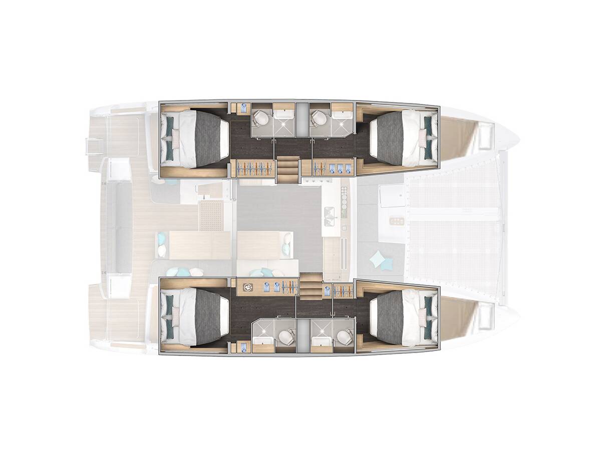 Lagoon 43 „Sail la vie“ ponúka špeciálny komfort s nasledujúcimi vlastnosťami vybavenia: Generátor, Klimatizácia, Vankúše do kokpitu, Invertor, Elektrické WC, Solárne panely.