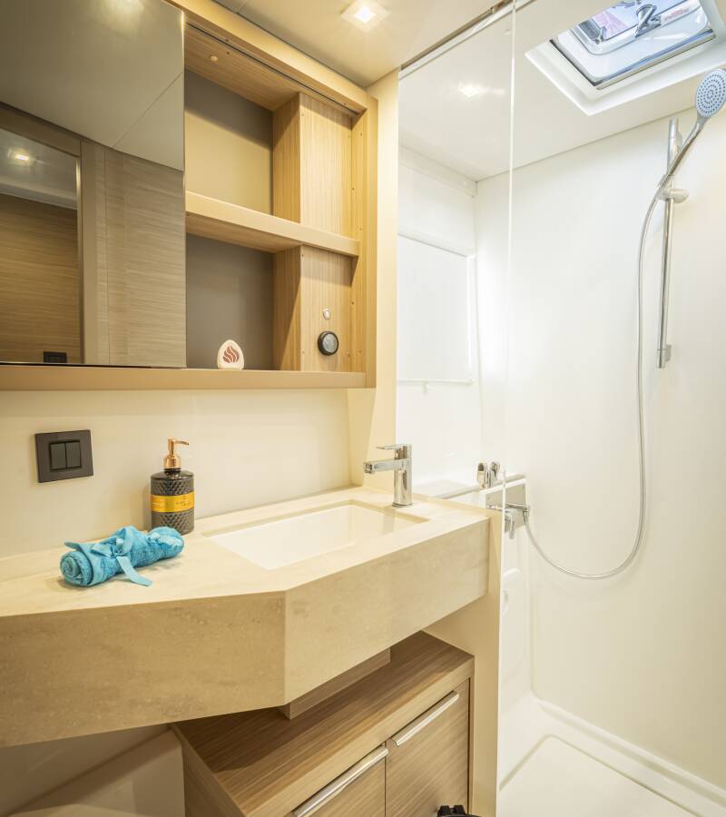 Lagoon 46 „Amalia“ ponúka špeciálny komfort s nasledujúcimi vlastnosťami vybavenia: Generátor, Klimatizácia, Mraznička, Invertor, Elektrické WC.