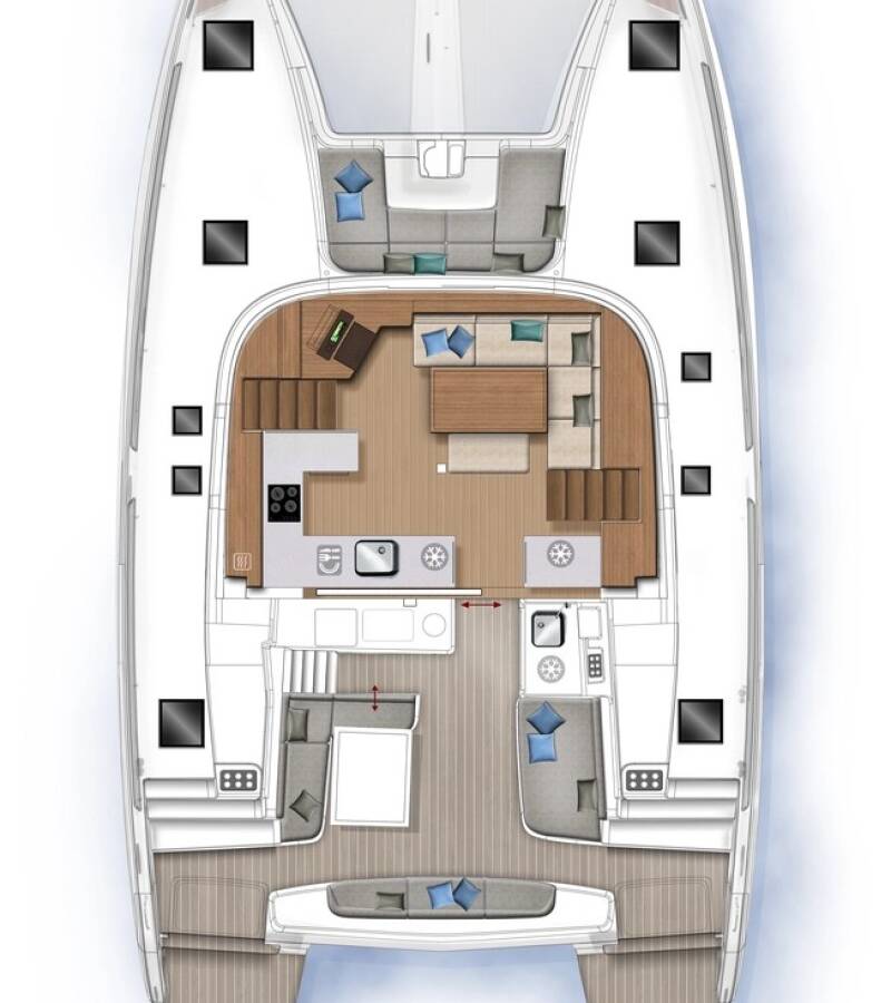 Lagoon 46 „Back to the Future“ je vybavená hlavným plachtou a genovou plachtou, ako aj Bimini, Autopilot, Sprayhood.