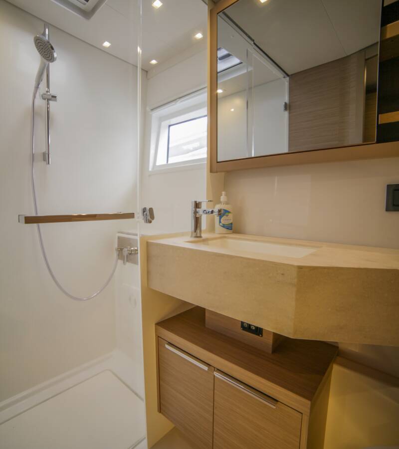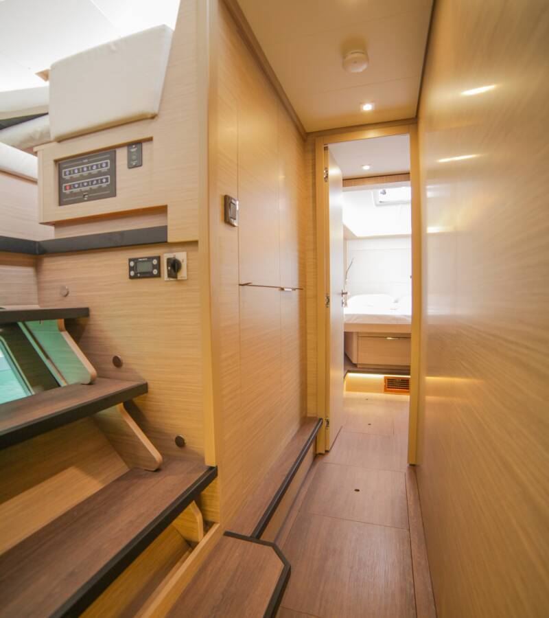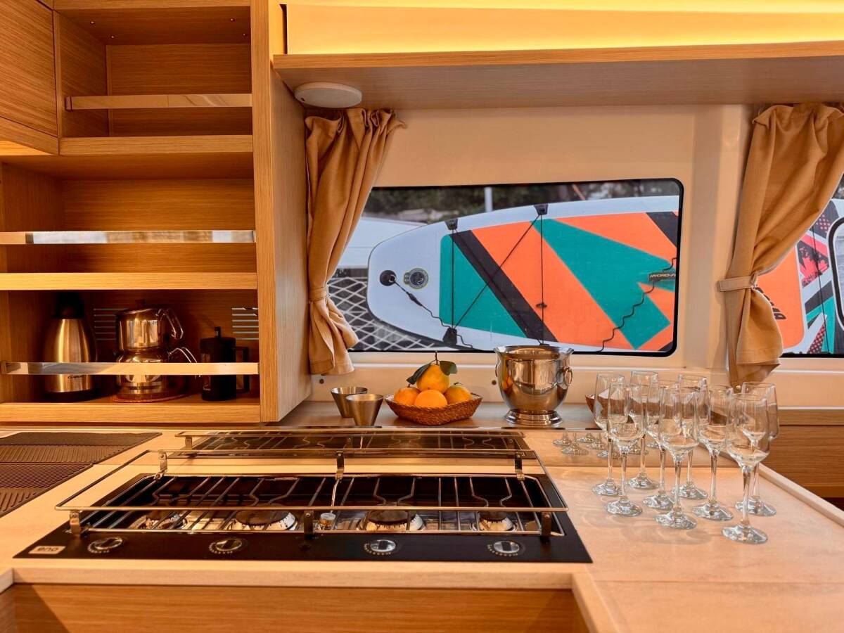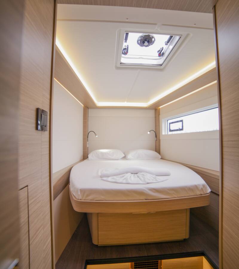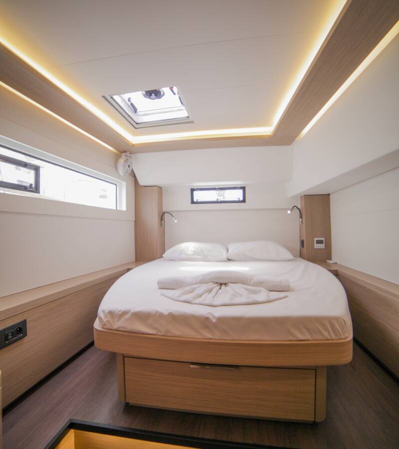 Lagoon 46 „Sail Pegasus“ je vybavená hlavným plachtou a genovou plachtou, ako aj Bimini, Autopilot.