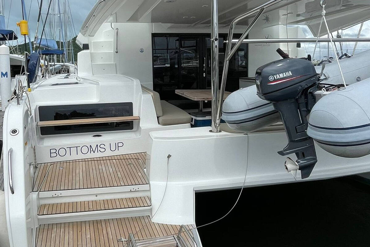 Katamarán Lagoon 50 „Bottoms up_X“, postavená v roku 2023, kotví v BVI, Tortola, Nanny Cay Marina - Britské Panenské ostrovy . Jachta má 6 + 2 kajút, môže ubytovať 12 + 2 osôb a disponuje 4 toaletami/sprchami.