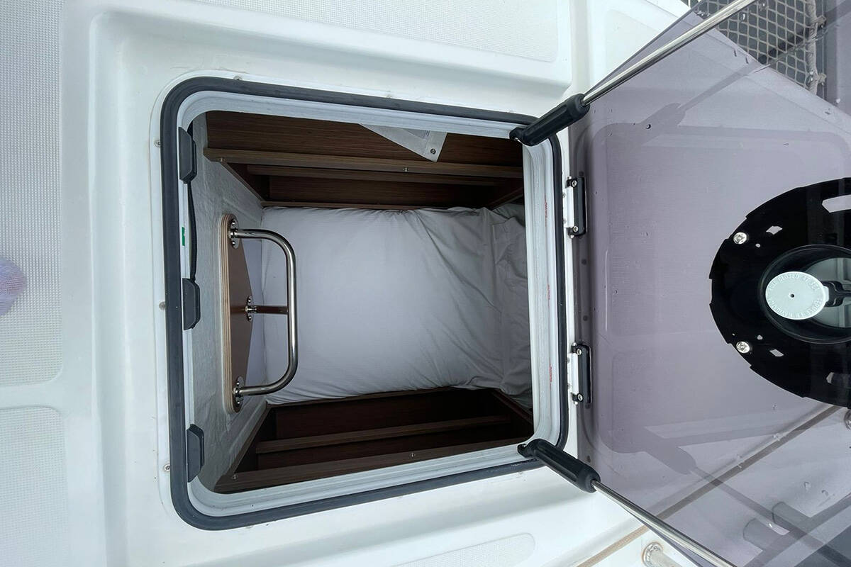 Lagoon 50 „Bottoms up_X“ je vybavená hlavným plachtou a genovou plachtou, ako aj Bimini, Autopilot, Kúrenie, Tíkový kokpit.