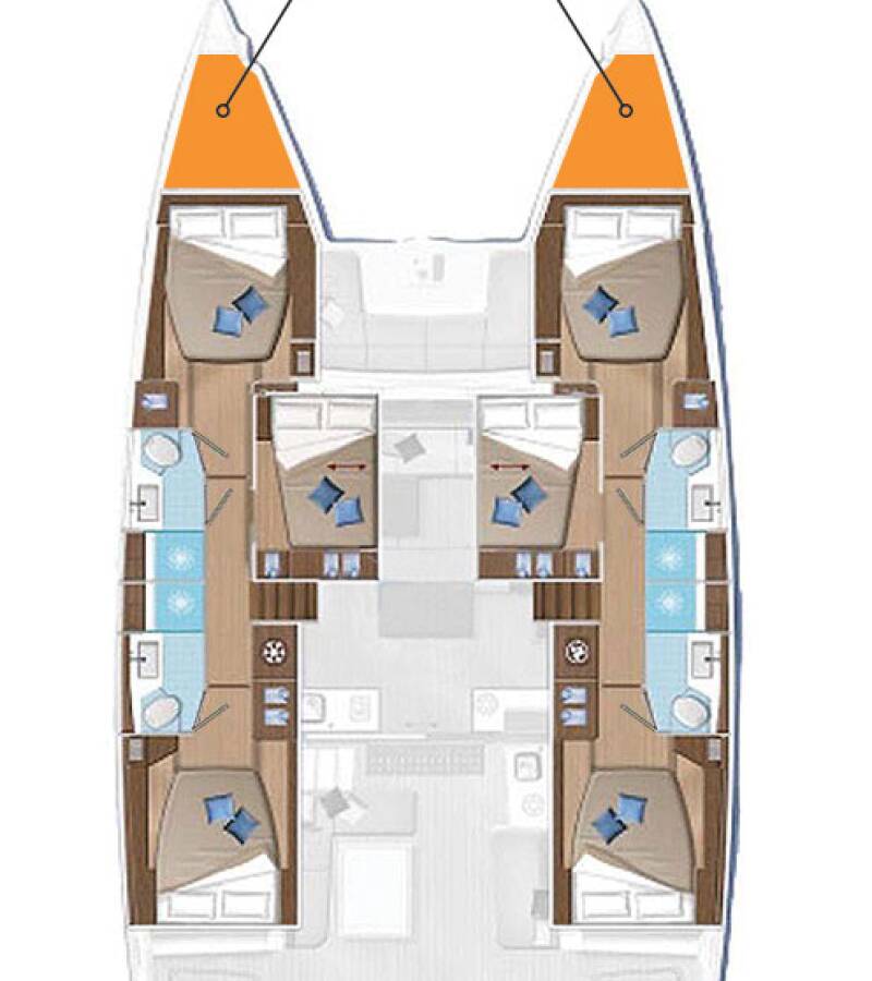 Lagoon 50 „Thor“ je vybavená hlavným plachtou a genovou plachtou, ako aj Autopilot, Kúrenie, Tíkový kokpit.