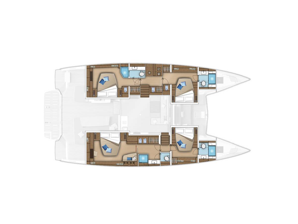 Lagoon 55 „Princess S“ je vybavená hlavným plachtou a genovou plachtou, ako aj Radar, Bimini, Autopilot, Kúrenie, GPS mapový plotter - kokpit.