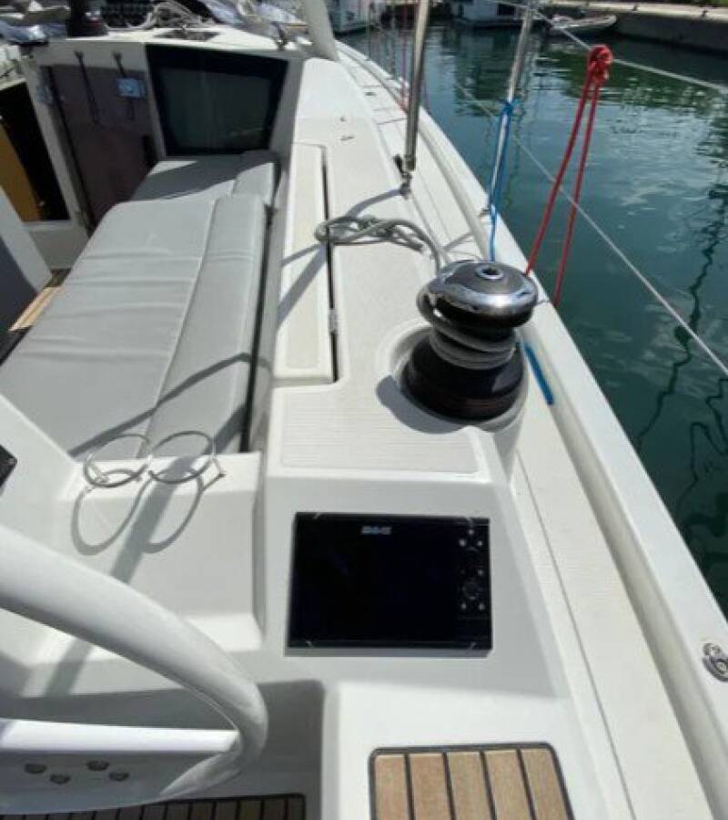 Oceanis 41.1 „Alma Libre V“ je vybavená hlavným plachtou a genovou plachtou, ako aj Bimini, Autopilot, Sprayhood.