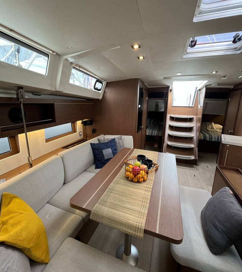 Oceanis 46.1 „Blue sky“ ponúka špeciálny komfort s nasledujúcimi vlastnosťami vybavenia: Bow thruster, Vankúše do kokpitu, Kúpacia platforma, Solárne panely.