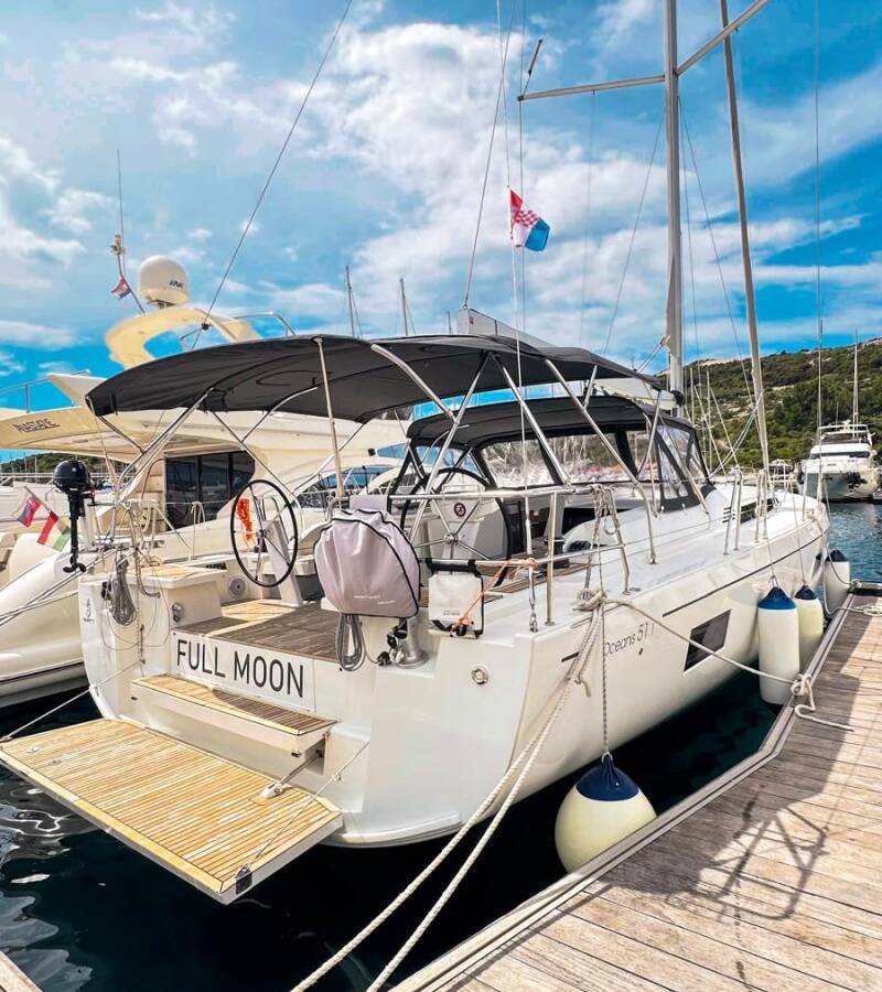 Plachetnica Oceanis 51.1 „Full Moon“, postavená v roku 2019, kotví v Primošten - Marina Kremik - Chorvátsko . Jachta má 5 + 1 kajút, môže ubytovať 10 + 1 + 1 osôb a disponuje 4 toaletami/sprchami.