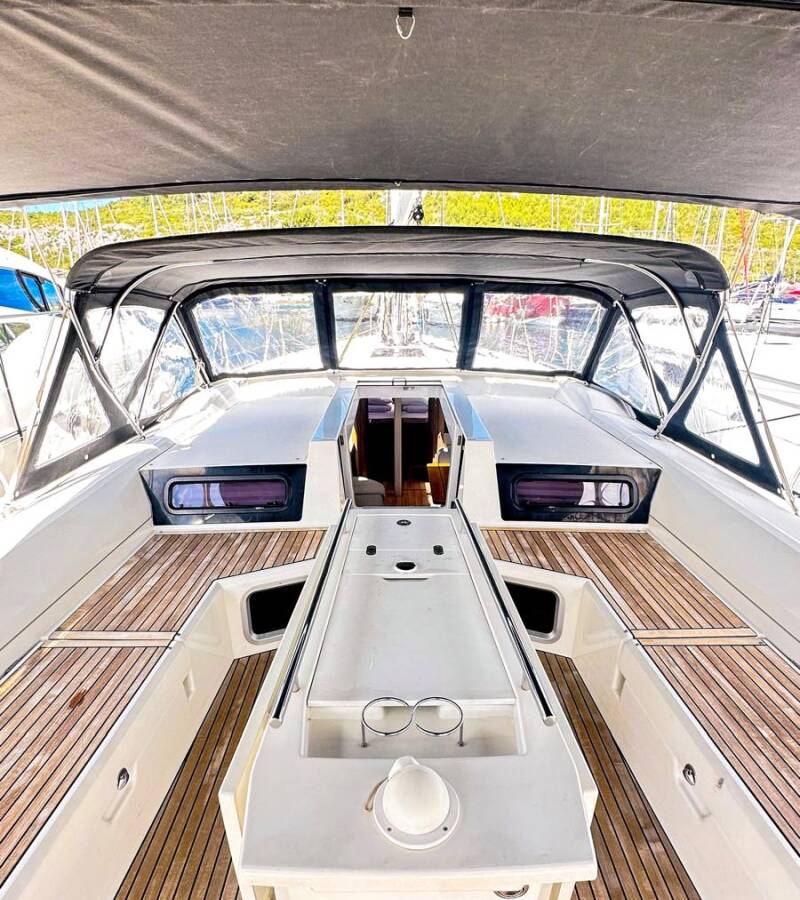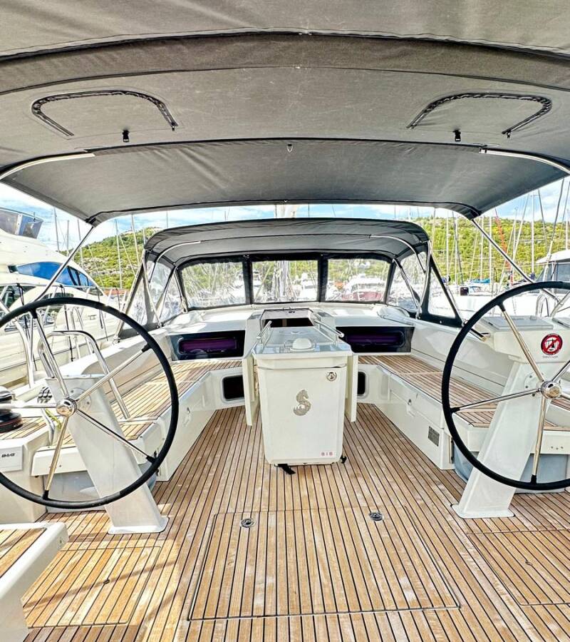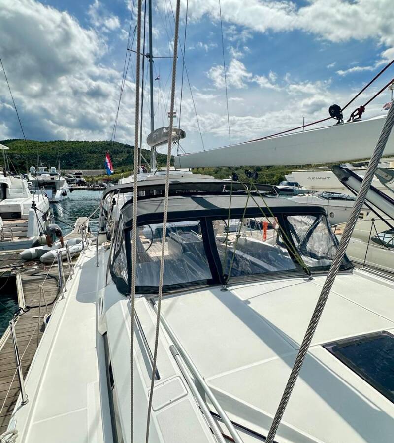 Oceanis 51.1 „Full Moon“ je vybavená hlavným plachtou a genovou plachtou, ako aj Bimini, Autopilot, Sprayhood, Kúrenie, Tíkový kokpit, GPS mapový plotter - kokpit.