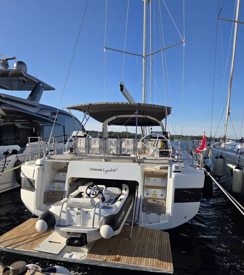 Oceanis Yacht 62 „Olga V“ je vybavená hlavným plachtou a genovou plachtou, ako aj Radar, Bimini, Autopilot, Sprayhood, Kúrenie, Tíkový kokpit, GPS mapový plotter - kokpit.