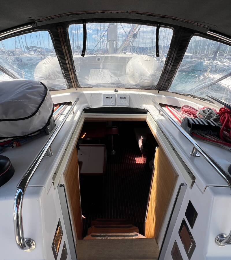 Salona 44 „Calanthe“ je vybavená hlavným plachtou a genovou plachtou, ako aj Radar, Bimini, Autopilot, Sprayhood, Kúrenie, Tíkový kokpit, GPS mapový plotter - kokpit.