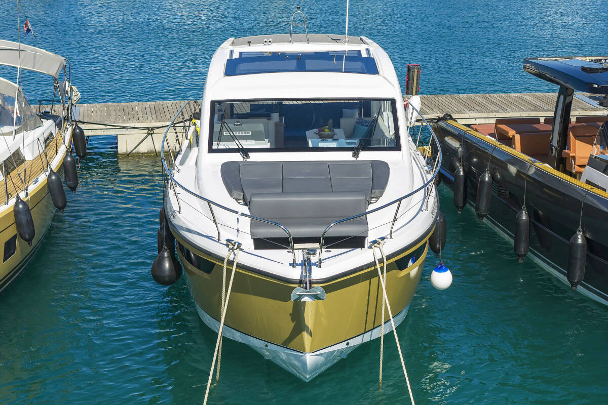 Motorová jachta Sealine C390 „Tireless“, postavená v roku 2024, kotví v Split - Marina Kaštela - Chorvátsko . Jachta má 3 kajút, môže ubytovať 6 + 2 osôb a disponuje 2 toaletami/sprchami.