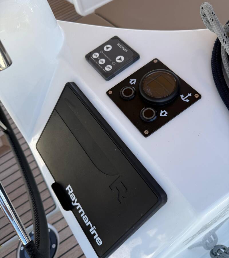 Sun Odyssey 410 „Sunset Kiss“ je vybavená hlavným plachtou a genovou plachtou, ako aj Bimini, Autopilot, Sprayhood, Tíkový kokpit, GPS mapový plotter - kokpit.