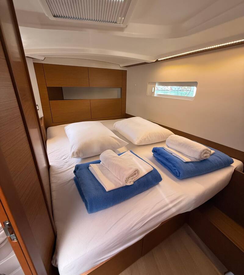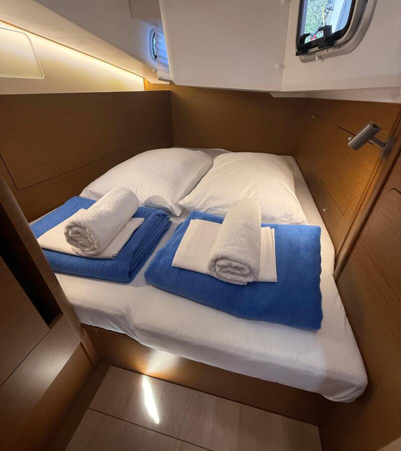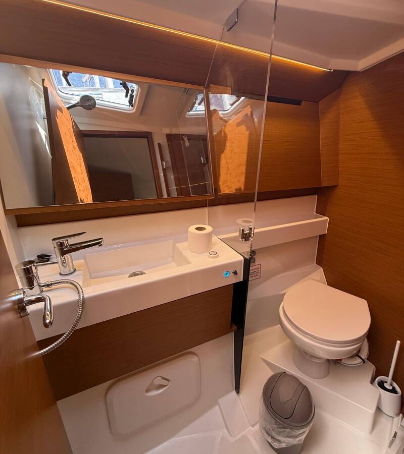 Sun Odyssey 410 „Sunset Kiss“ ponúka špeciálny komfort s nasledujúcimi vlastnosťami vybavenia: Bow thruster, Vankúše do kokpitu, Kúpacia platforma, Elektrické WC.
