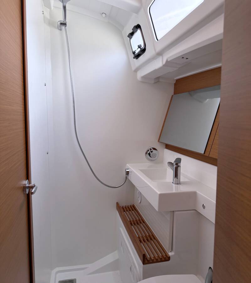 Sun Odyssey 490 „Poseidon“ je vybavená hlavným plachtou a genovou plachtou, ako aj Bimini, Autopilot, Sprayhood, Kúrenie, Tíkový kokpit.